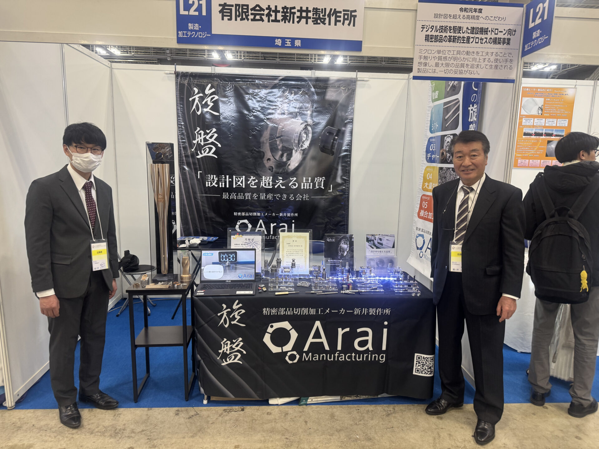 今回、弊社は【デジタル技術を駆使した建設機械・ドローン向け精密部品の革新的生産プロセスの構築事業】をテーマに展示会に出展いたしました。