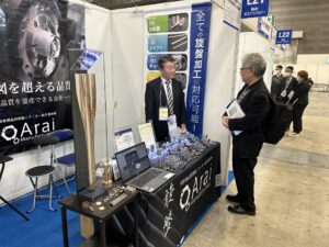 3日間、予想をはるかに超えるお客様にご来場頂き、旋盤加工の精度にこだわった当社製品および当社をしっかりとご案内することができました。今回の企業様との出会いを大切にしてまいります。